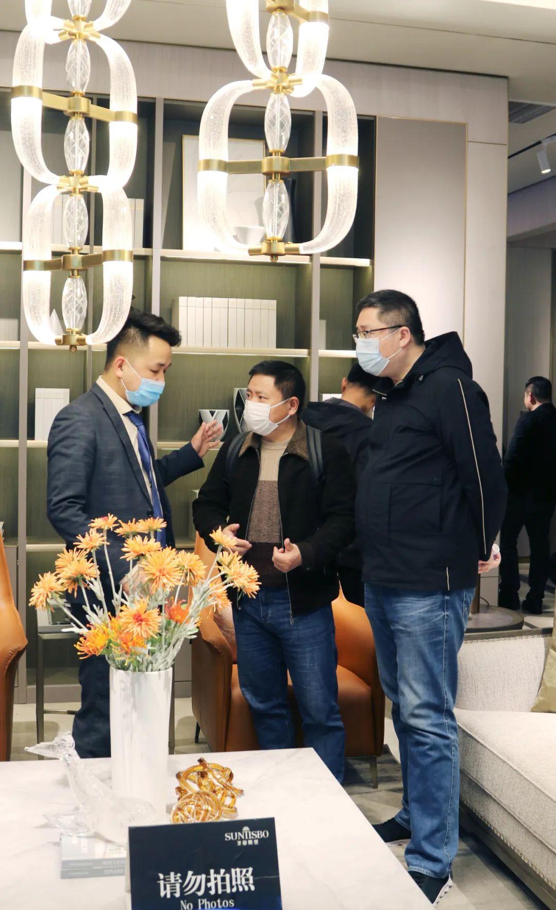 展廳內,專業的導師為嘉賓們詳細介紹了產品工藝特點、整體造型特色、裝飾元素以及色彩搭配等;還有全屋定制、固裝、營銷等部門高管,與經銷商熱情的交流溝通,并為大家講述了圣蒂斯堡的原創設計理念。“洛斯”主打的差異化輕奢,更是贏得了在場經銷商家人的高度贊譽;圣蒂斯堡用實際行動證明了在家居界不可比擬的產品優勢和實力。