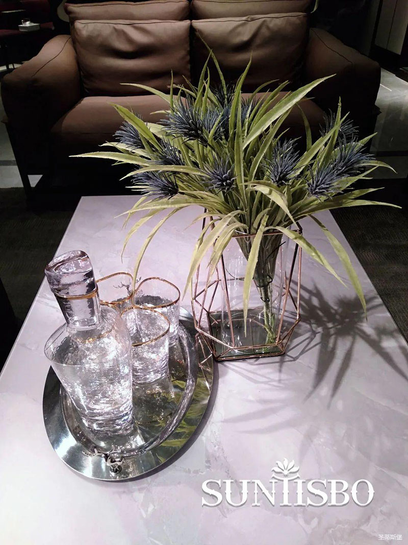3.輕奢的配飾也需邀來似錦繁花相稱。色彩跳脫的植物更為亮眼,讓自然界的色彩與姿態應和空間之間的協調,傳遞空間與情感的共鳴。