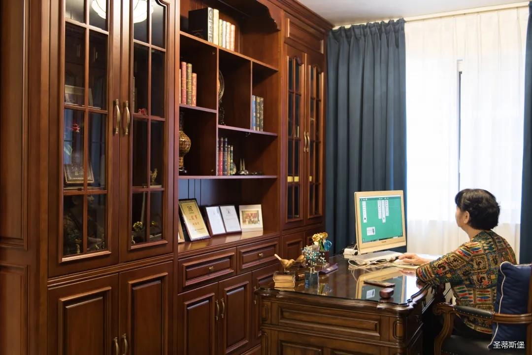 業主夫婦非常熱情好客,平時工作之余也會在家里邀三兩好友一起觀影,觀影室的整體設計容納著濃烈的古色古香,長方形圖案排列搭配復古的家具與配飾,精細的雕花藝術,于細節之間演繹著精致生活。不管時光如何輾轉變換,家的定義從不曾改變,它撫慰著我們的心靈,承載著我們的喜樂,從細膩的質感中感知家的點滴變化,才是對生活最真實的寫照。