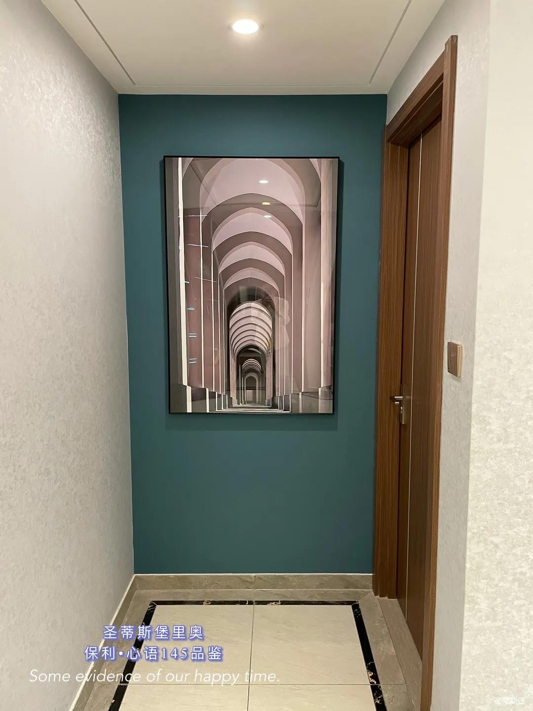 ▲進門有個小過渡“玄關”,幾步就可到客餐廳中心區(qū),由于玄關空間較小。所以以一幅抽象畫直接營造入戶氛圍!