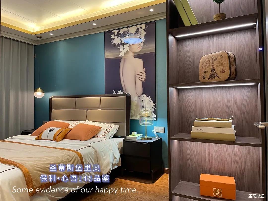 ▲床屏簡約的線條與定制柜的功能設置讓貼墻的藝術掛畫,散發(fā)出優(yōu)雅而大膽的美感。