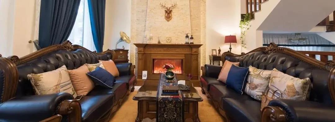 ▲客廳以灰色為主調,電視背景墻采用拼接大理石搭配實木闌珊,與對立墻面形成撞色處理,既可以加深空間層次感,也提升了空間明亮度。一字型真皮沙發(fā)與實木電視柜中和了大空間的空曠,打造出一個談心敘話的和諧空間。