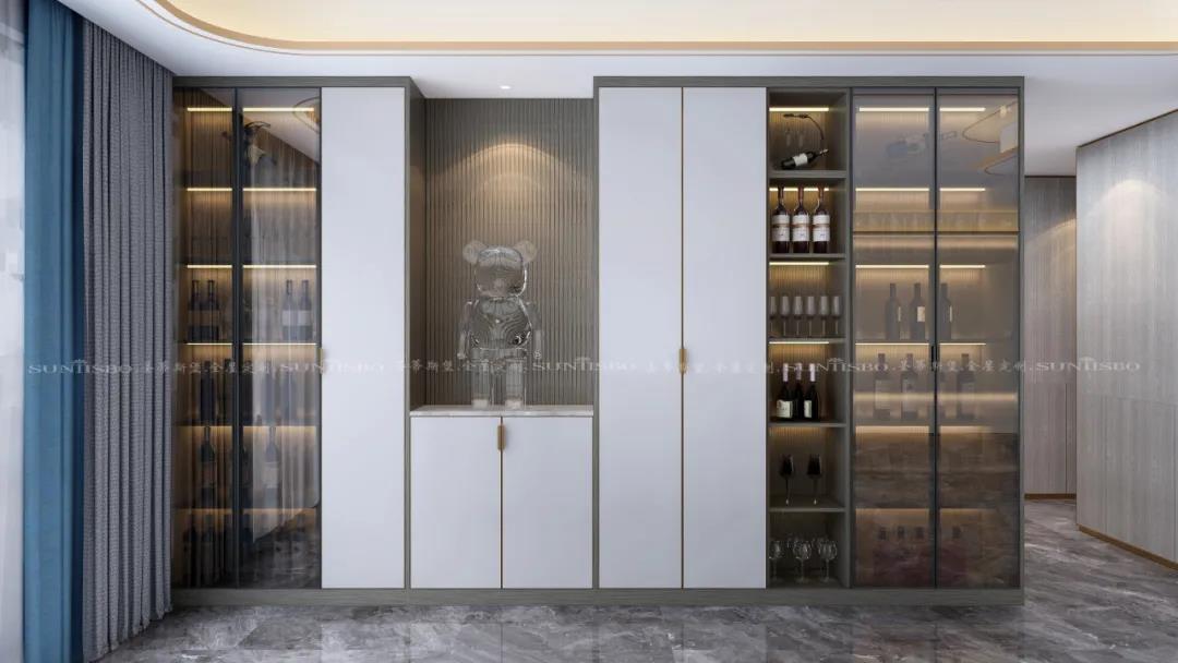 ▲英倫仿古灰的定制柜體在復古中給空間增添了一份高貴感。