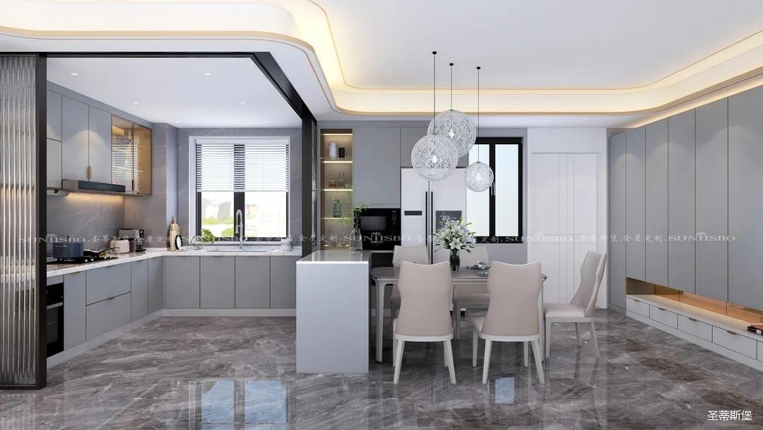 藏是漏的基礎。在社交軟件流行的當下,親情之間也逐漸越來越遠,推演到空間,餐廚之間需要的不再是實墻的阻隔,而是用長虹玻璃代替,開合之間,他的認真,你的可愛,都能在不經意間盡收眼底。