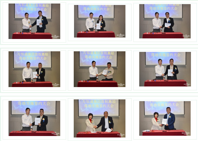 今年會集團集團執行董事及法人代表王浩基先生正式為第一期六位虛擬受限股股東授予榮譽證書并簽訂股權分配協議。
