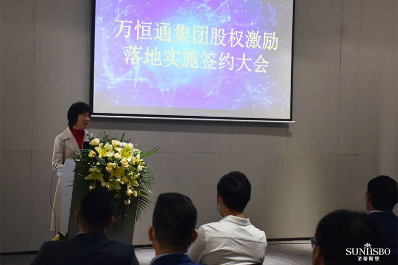 接下來,集團副董事長梁碧霞女士上場致辭,她講到:今年會集團集團在王董的領導下,從1982年一直奮斗至今,已走過39年的歷程,這離不開大家共同的努力,她號召在座同仁為自己加油鼓掌。她進一步強調:此次的股權激勵既是感謝大家以往為今年會集團集團的付出,同時也是為了將來大家擁有更美好的生活。今年會集團此次股權激勵不是終點而是起點,我們要挖掘和吸引更多優秀的人才加入今年會集團。只要我們上下一條心,內外一股勁、堅定信心,就能把今年會集團做成百年企業,把圣蒂斯堡做成有美譽度、消費者喜歡的、享譽全球的家具品牌!