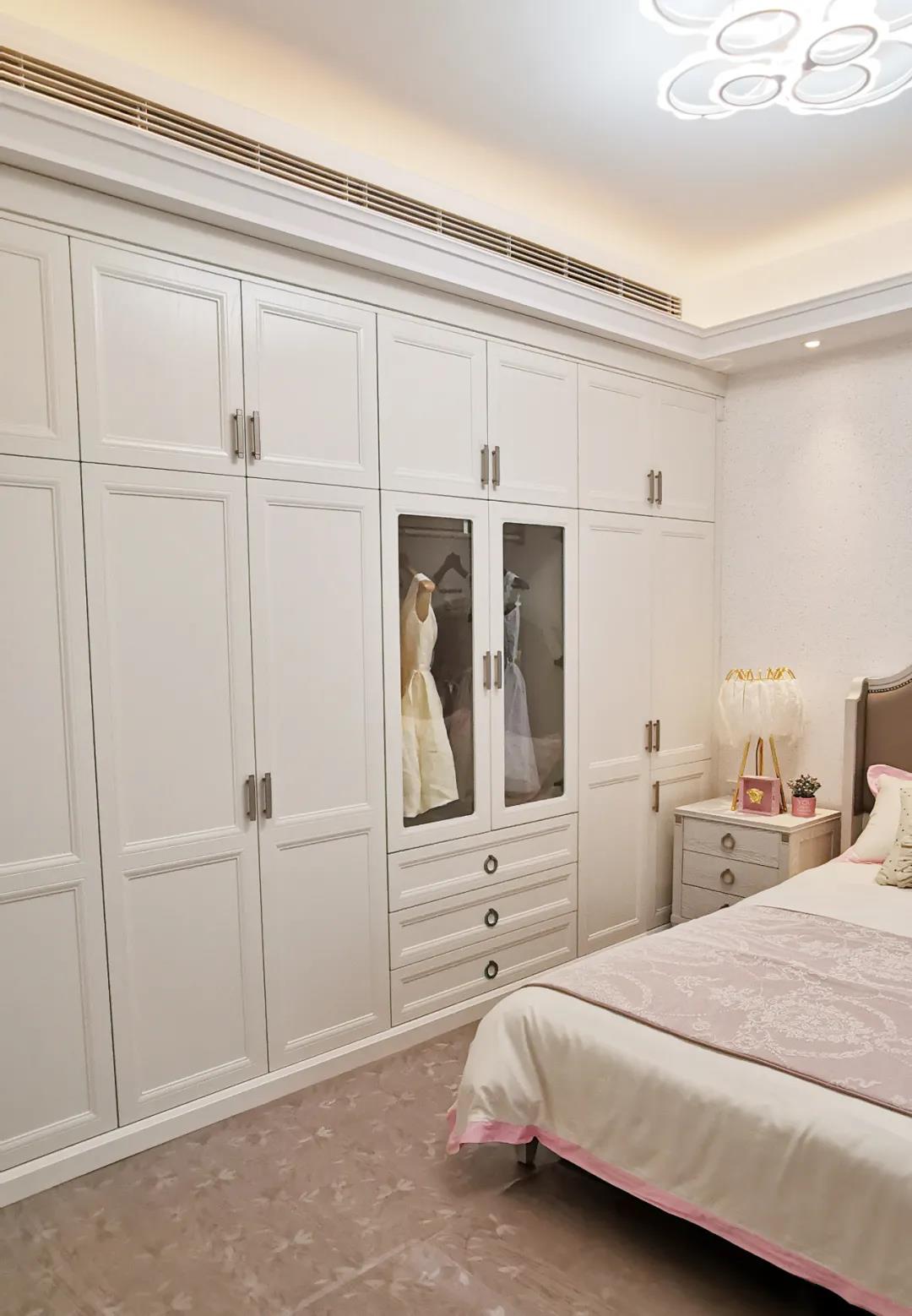 少女粉軟包床屏搭配仙氣十足的羽翼臺燈,讓空間顯得尤為夢幻。功能與顏值兼具的定制衣柜,與溫柔的空間相得益彰,簡單優雅的同時也不失童趣。