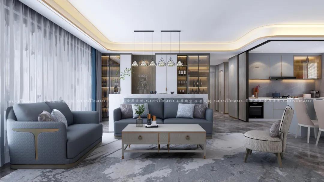現(xiàn)代戶型更是迎合了這種簡約趨勢,將客餐廳設(shè)計在同一水平線上,還可以考慮在墻體做壁龕設(shè)計,把電視嵌入墻體內(nèi)部,讓客廳空間一體式立面效果更整潔,空間的整體感更強,動線也更加流暢。