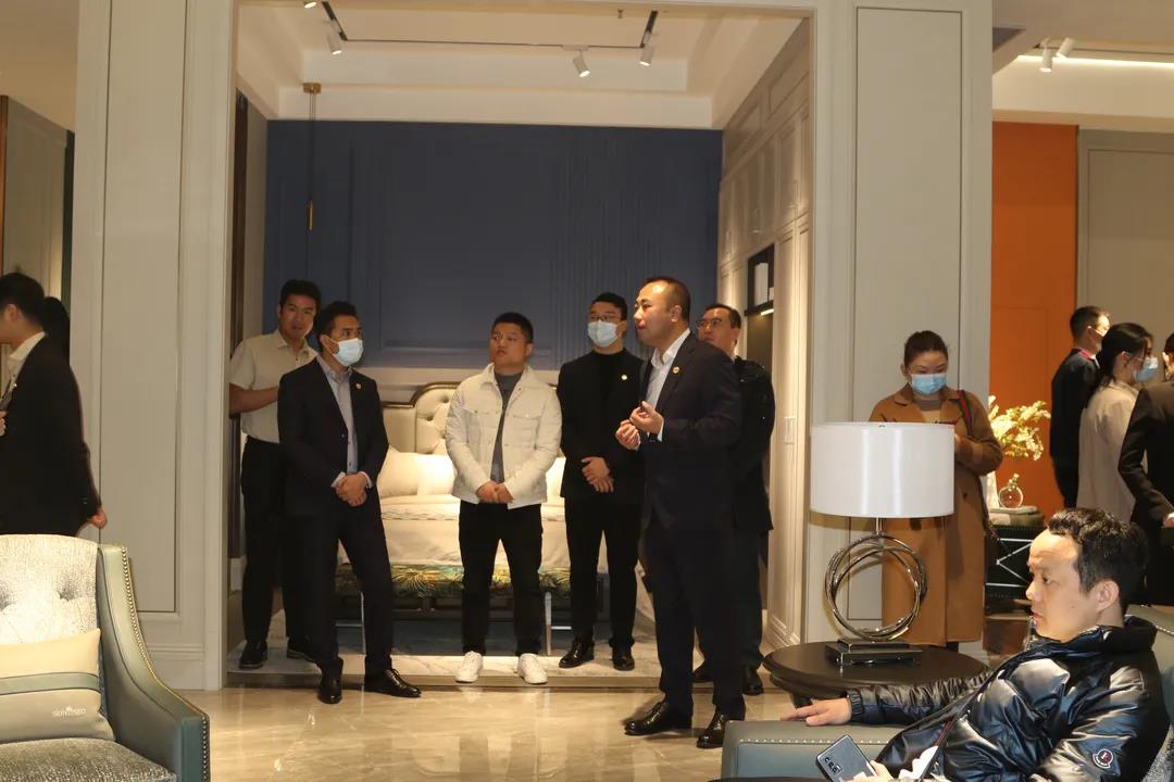 在新品系列展廳內,今年會集團集團營銷部總經理陳玉偉先生對【圣蒂斯堡.迪尚】新品、及【圣蒂斯堡.新古典】升級新品的產品革新、空間打造、及營銷賦能、拎包項目優勢、未來市場剖析等方面進行了多維度的闡述。他表示隨著消費者審美升級,對于高品質高顏值家居的追求也與日俱增,圣蒂斯堡“移動家具+整裝定制”的整合優勢一直緊貼時代趨勢和潮流,必將贏得更加廣闊的市場藍海、和更多的消費者認可和信賴。