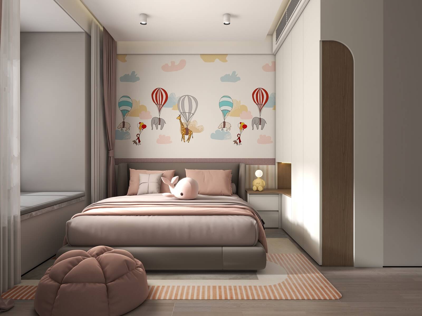 兒童房采用溫柔的奶白作為空間底色,整墻卡通貼畫(huà)搭配奶油白衣柜,在細(xì)節(jié)上用粉色裝飾作為跳色,無(wú)形中增加立體感和層次感,營(yíng)造出童真舒適的兒童夢(mèng)中情房。
